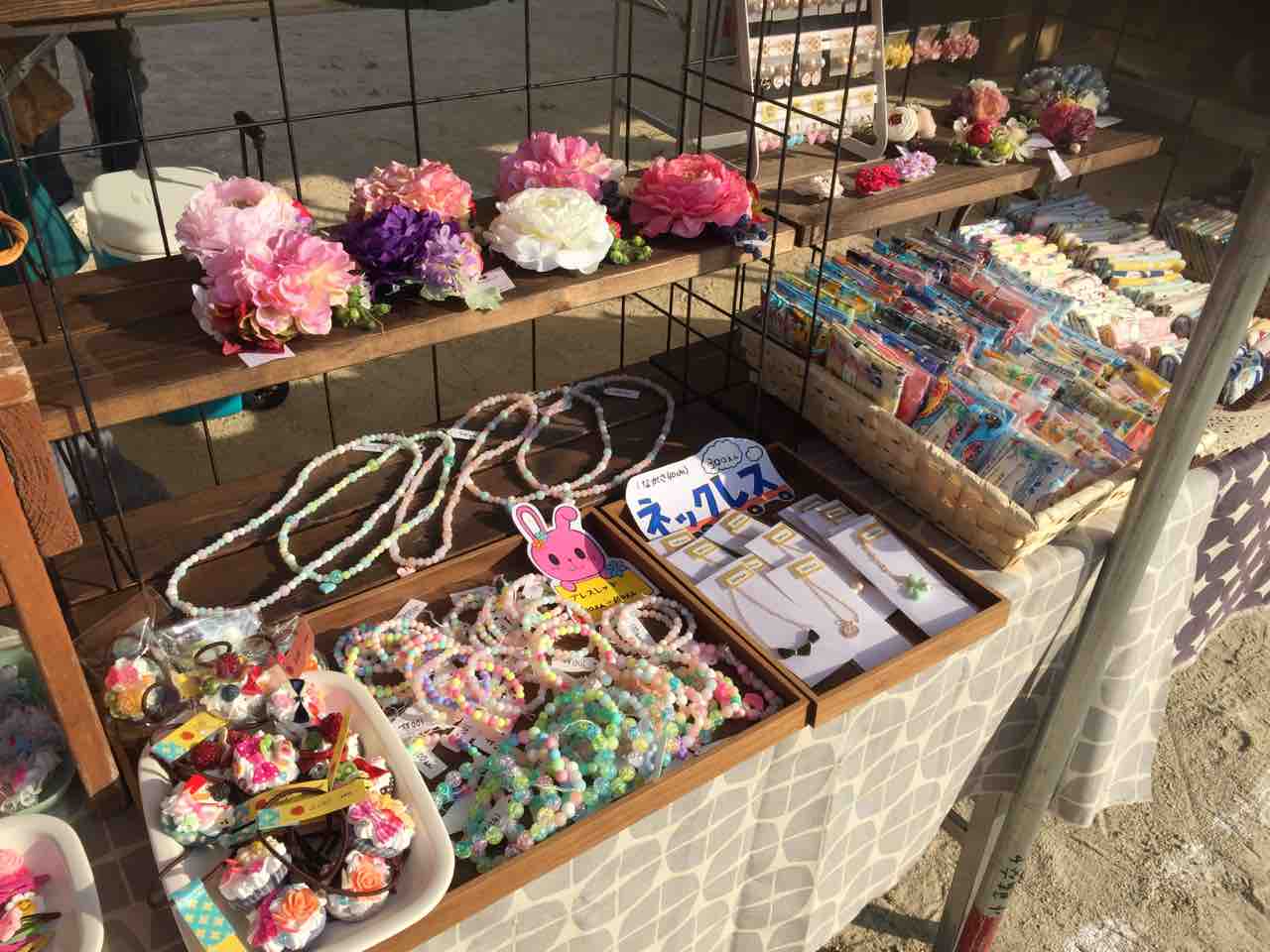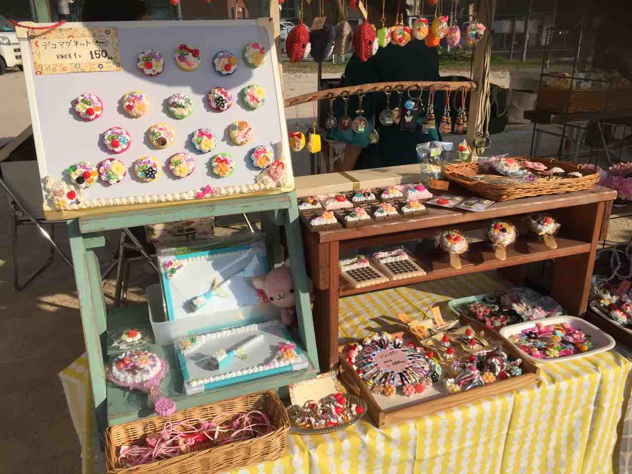 夏祭り。 2018年08月23日 10:40 お盆前のことだったが・・・地元の夏祭りに、友人とハンドメイドで出店した。長年創り続けているコサージュ。このお祭りのときは、プチプラでご用意している。浴衣を着た可愛いお客様が、お小遣いでお買い物できますようにと願いを込めて。コサージュもお花のイヤリングも好評で良かった。可愛いものいっぱいのコーナー完成。喜んでお買い物してもらえて嬉しかった。お祭り会場のフードコーナーにて初めて出会った「冷やし雑炊」お出しと薬味が利いていて美味。毎年楽しみにしている夏祭り。いつまでも続いていつまでも楽しみたいな。 「創ること」カテゴリの最新記事 < 前の記事次の記事 > コメント コメントフォーム 名前 コメント 評価する リセット リセット 顔 星 投稿する 情報を記憶